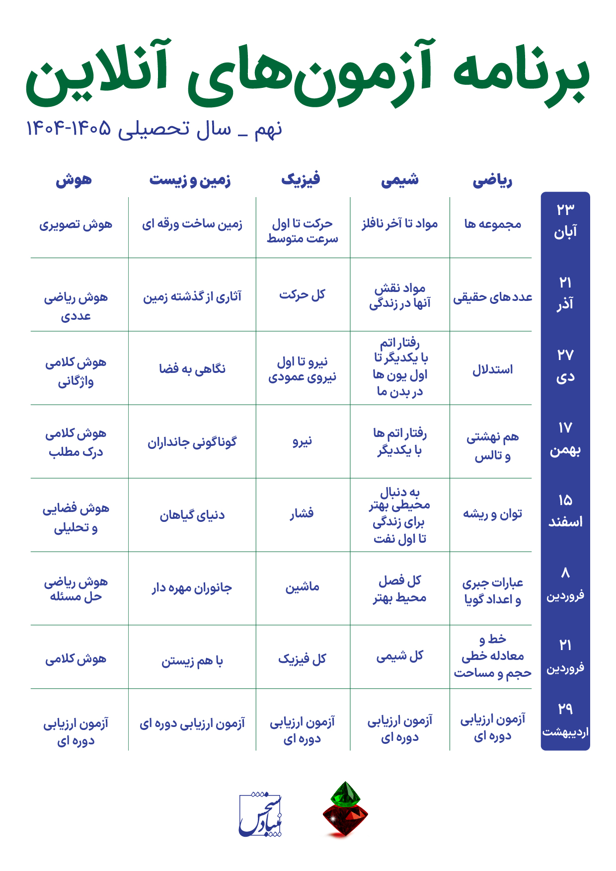 آزمون آزمون های جامع سالیانه پایه نهم متوسطه